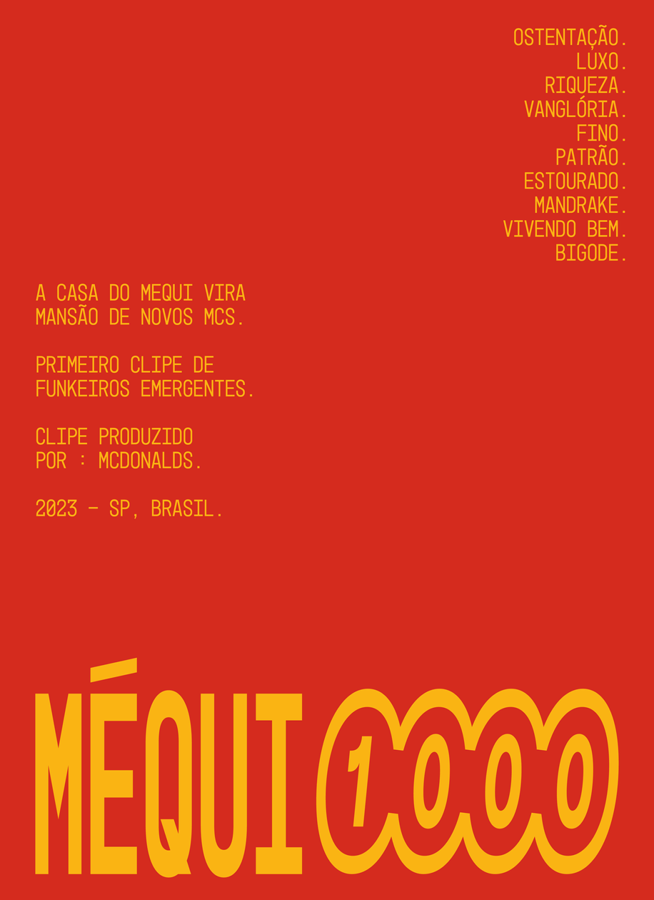 Convidamos pequenos mc's e funkeiros independentes para fazerem seus primeiros videoclipes autorais com uma superprodução regada de ostentação, pra luxar na maior mansão pop de SP: o Mequi 1000.